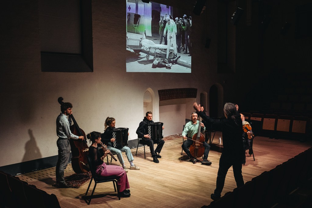 Het ensemble bestaat uit een uiteenlopende groep muzikanten waaronder Kris Matthynssens (altviool), Ward De Vleeschhouwer (piano), Loeke Vanhoutteghem (spoken word), Suzan Peeters (accordeon), Ward Ginneberge (accordeon), Dirk Moelants (viola da gamba), Nathalie Van Meirvenne (basfluit), Flor Delombaerde (bas) en Laurens Van Bouwelen (percussie).